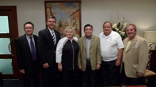 From left : Dr Stephen Sim, Associate Vice President of International Affairs, TU; Dr Earl Brooks, Chancellor of Trine University; Ms Sheri Trine, Member of Board of Trustee, TU; Dr CY Tang, President of Putra International College; Dr Ralph Trine, Member of Board of Trustee, TU and Mr Richard M. Hickman, Mayor of Angola City.